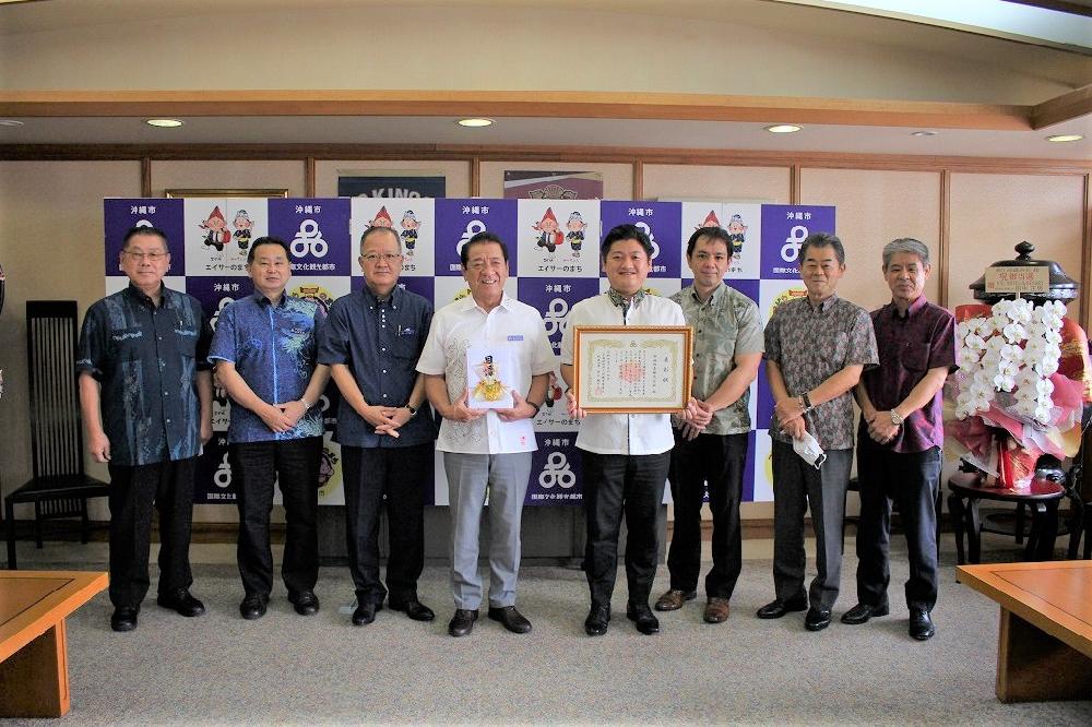 中部興産㈱では、2022年6月14日(火)に沖縄市役所を訪問し、「沖縄市育英会」へ100万円を寄付させていただきました。